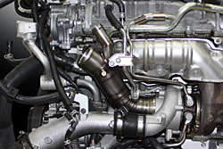 Mine’s has released its original surge tank and titanium piping kit for R35 GTR. The picture on the left shows what are included in the kit. The picture on the right is the surge tank installed on Mine’s complete engine 4.1.